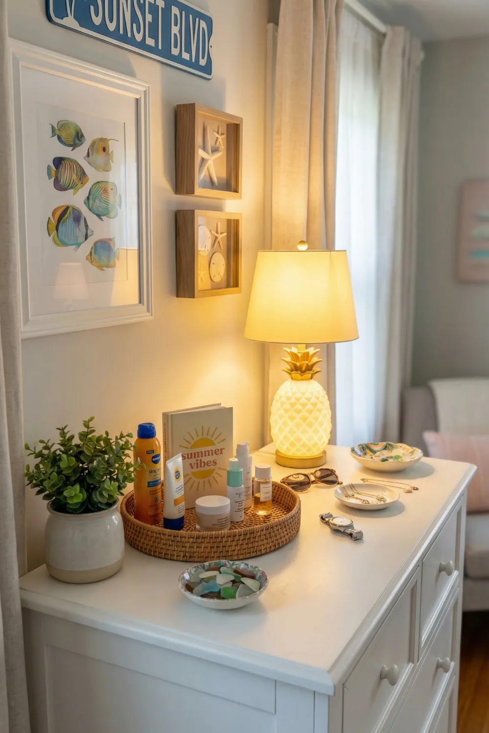 2. Coastal Dresser Styling — When One Surface Does All the Work