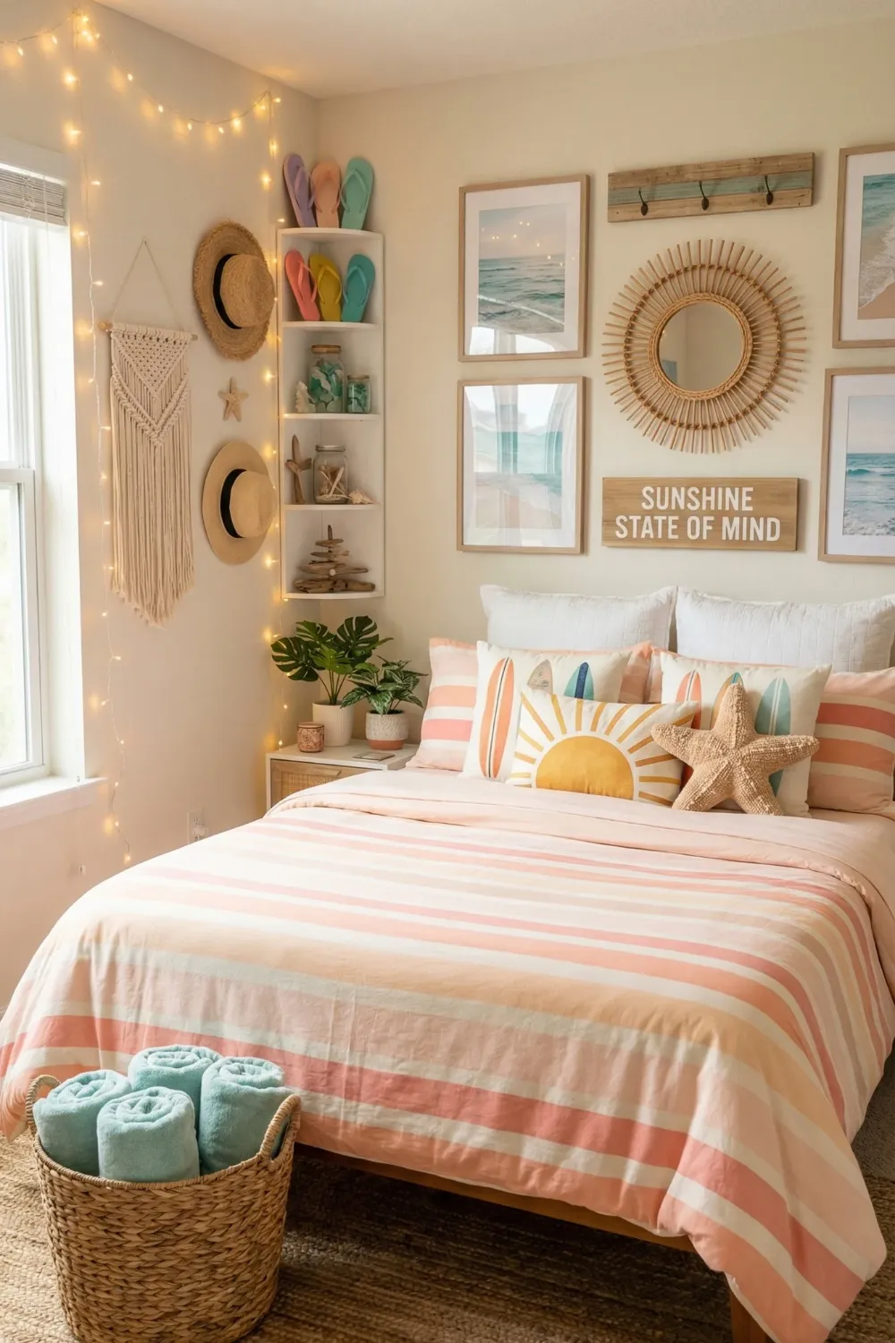9. Playful Beach-Inspired Bedroom — Controlled Maximalism