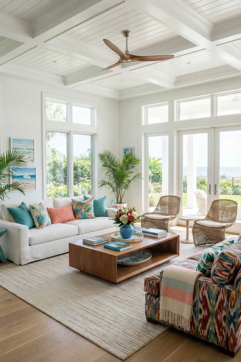 Decide how the room should feel before deciding what to put in it. The feeling — breezy, tropical, coastal-calm, joyfully eclectic — is the brief. Every object, material, and colour choice that follows should pass the simple test: does this support that feeling, or does it work against it?