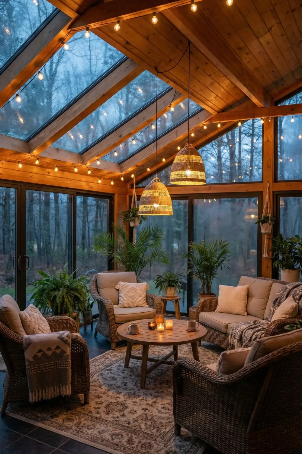 - The transition from daylight to evening is the critical moment in a glass-ceiling sunroom — without a thoughtful artificial lighting plan, the room that was magical at 4pm becomes cold and uninviting at 7pm