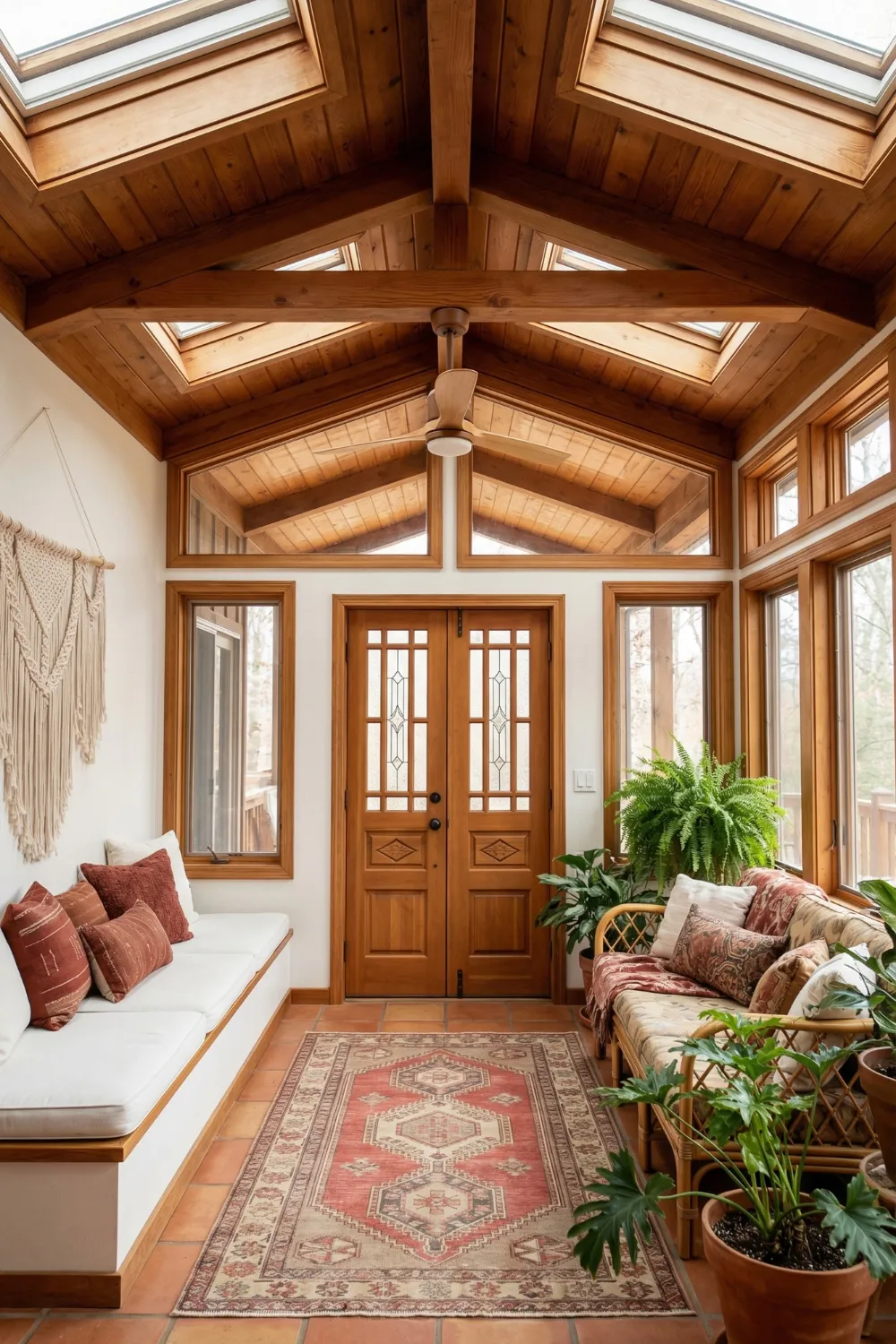 The boho sunroom is the format that most honestly expresses what a sunroom can be at its most successful: a space that people settle into rather than sit in, where the combination of natural materials, warm light, and layered textures creates an environment that actively encourages staying longer than planned.