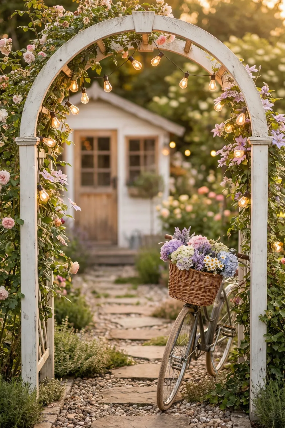 7. Cottage Garden Archway With Vintage Bicycle — Framing as a Design Tool