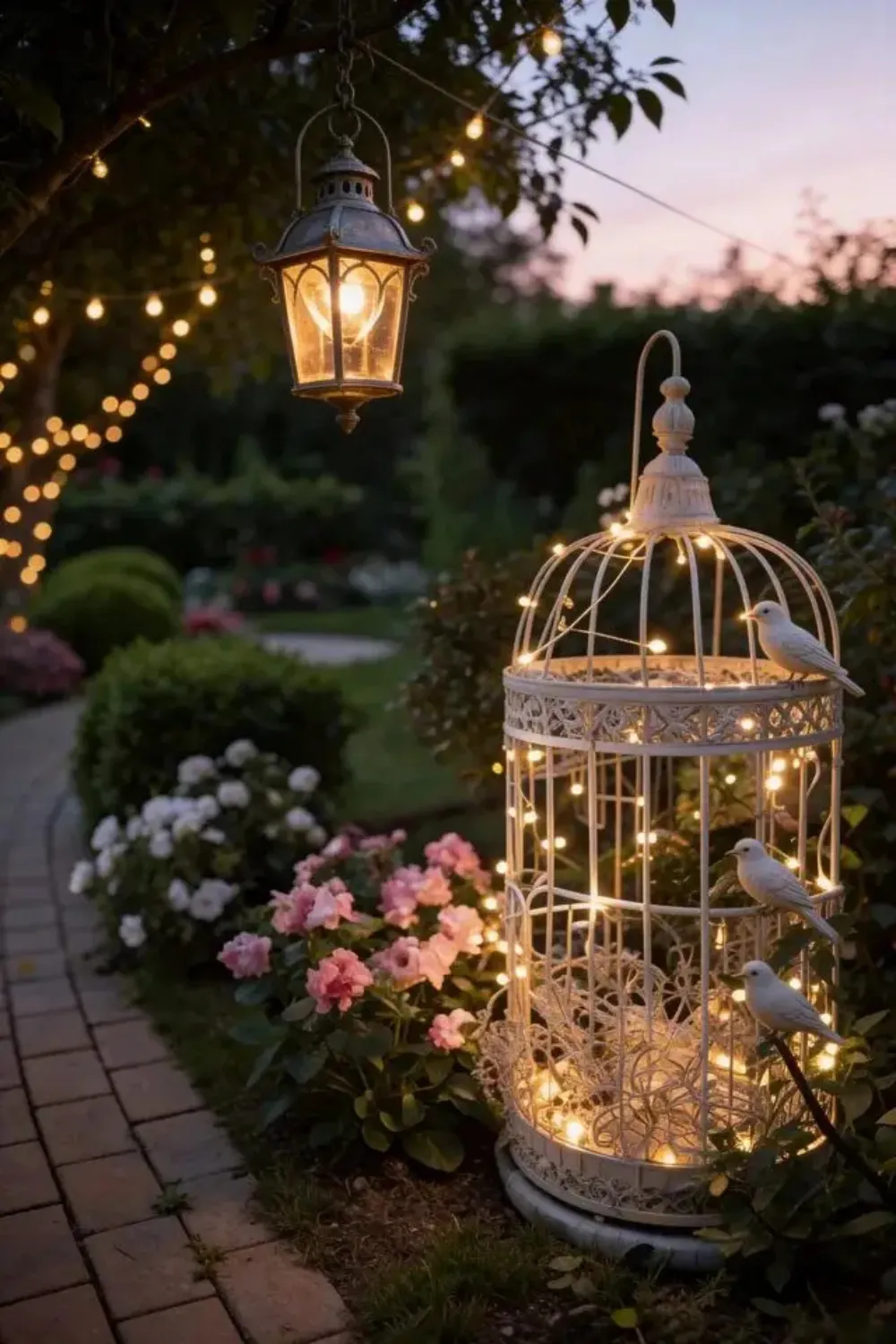 8. Glowing Birdcage Lantern for Evening Gardens — Layered Light Sources