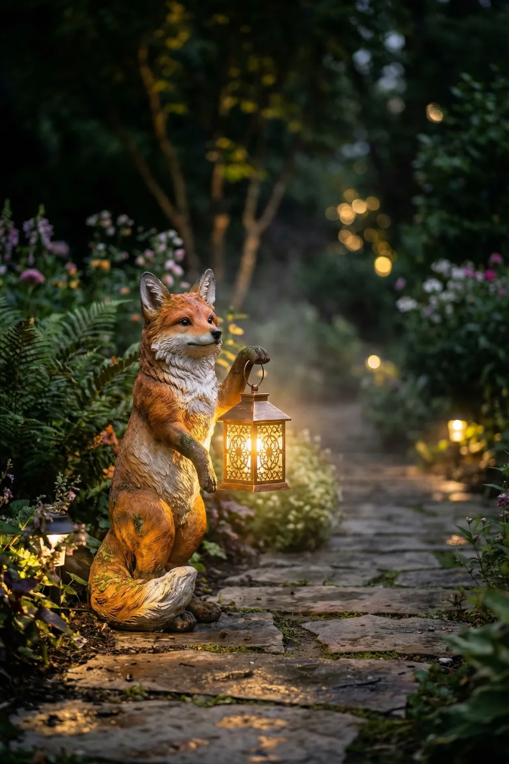 10. Storybook Fox Lantern Along Garden Pathways — Personality as Design